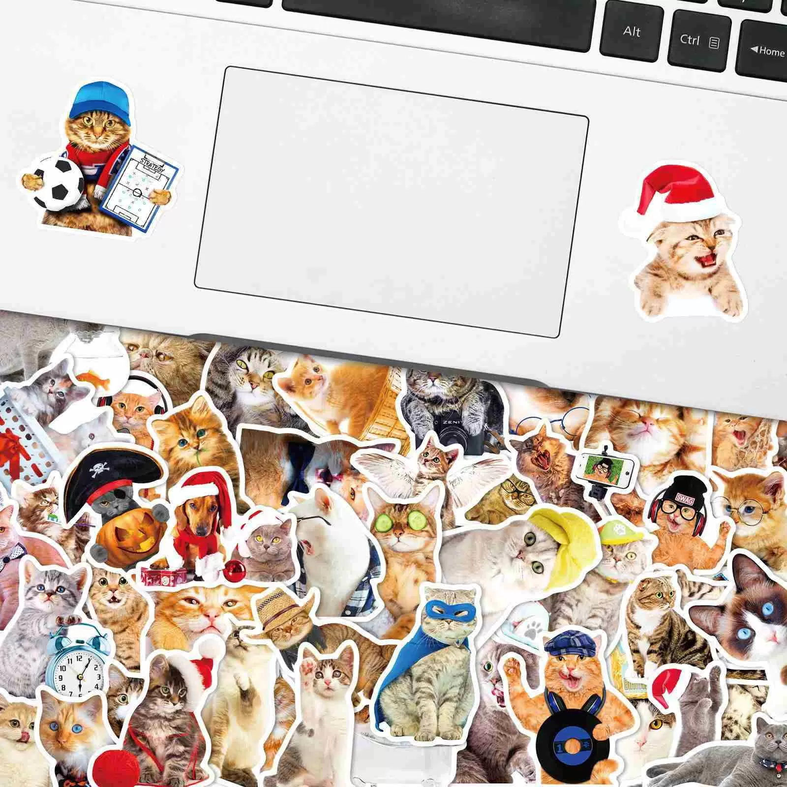 JIELEN 50 PCS Cute Cartoon Doodle Cat Stickers, Waterproof Vinyl Sticker Pack for Scrapbooking, Bullet Journal, Planner Decoration, Laptop, Phone, DIY Crafts