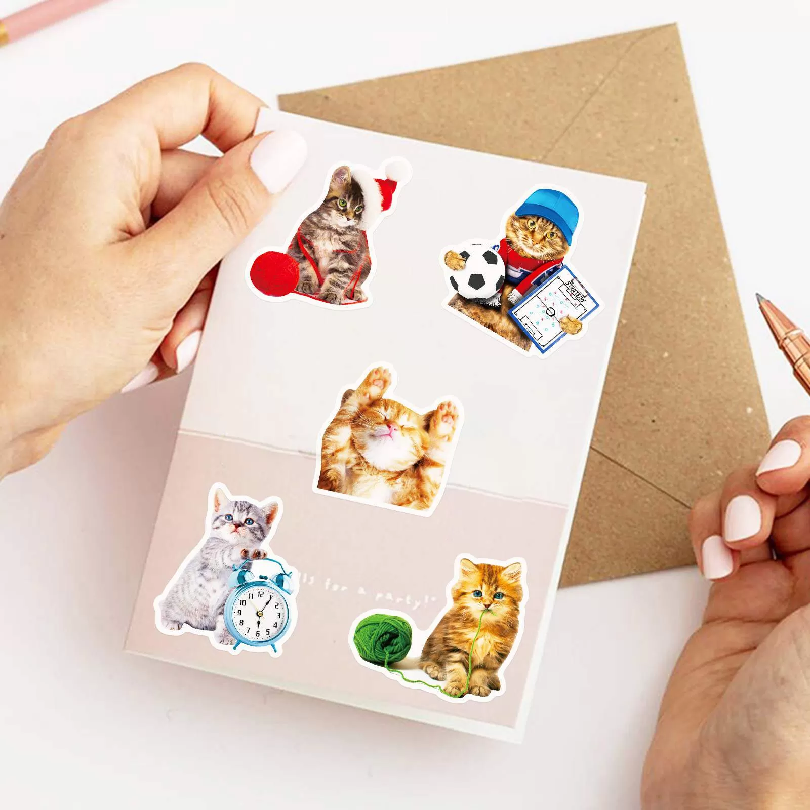 Vibrant Design:Features 50 unique playful cat doodle stickers with a variety of fun expressions and poses, perfect for adding a touch of creativity to any project.