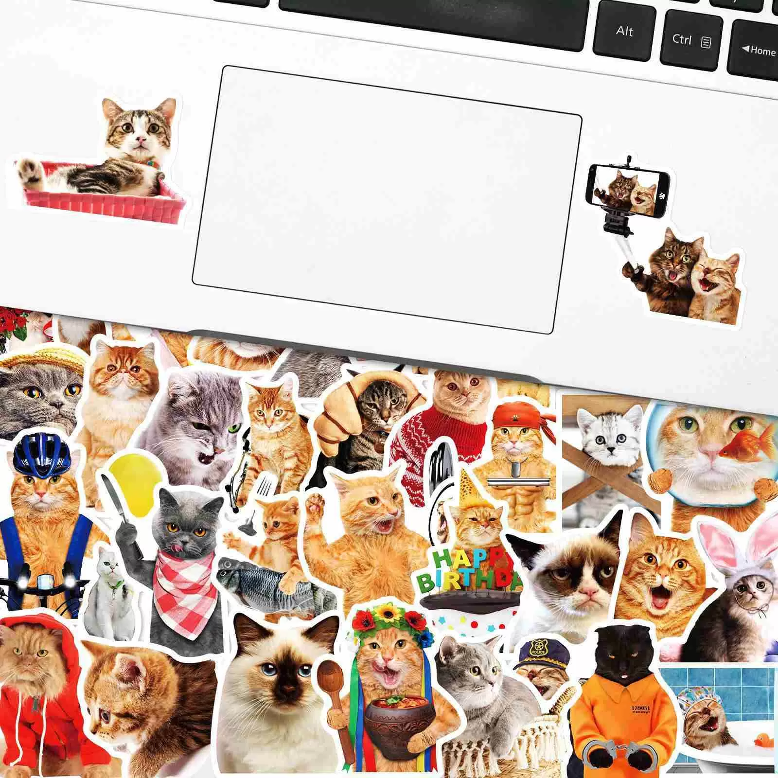 JIELEN 50 PCS Cute Realistic Cat Stickers, Adorable Feline Animal Sticker Pack for Scrapbooking, Journaling, Planner, Laptop, DIY Crafts Decoration