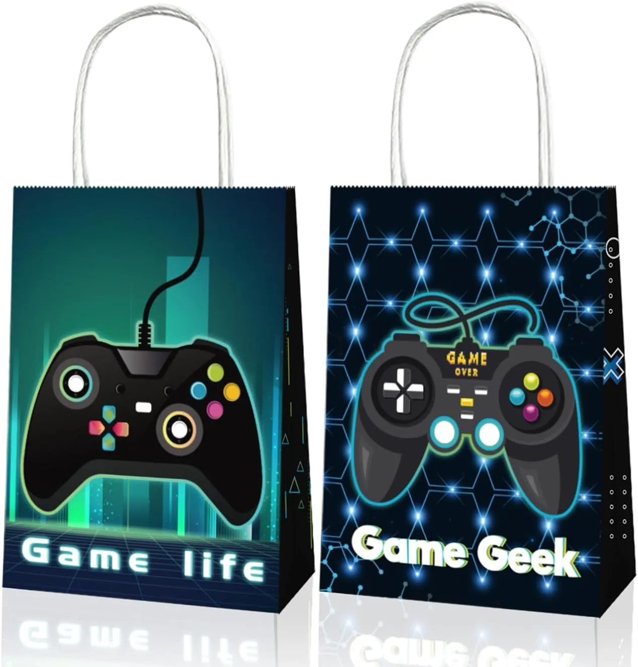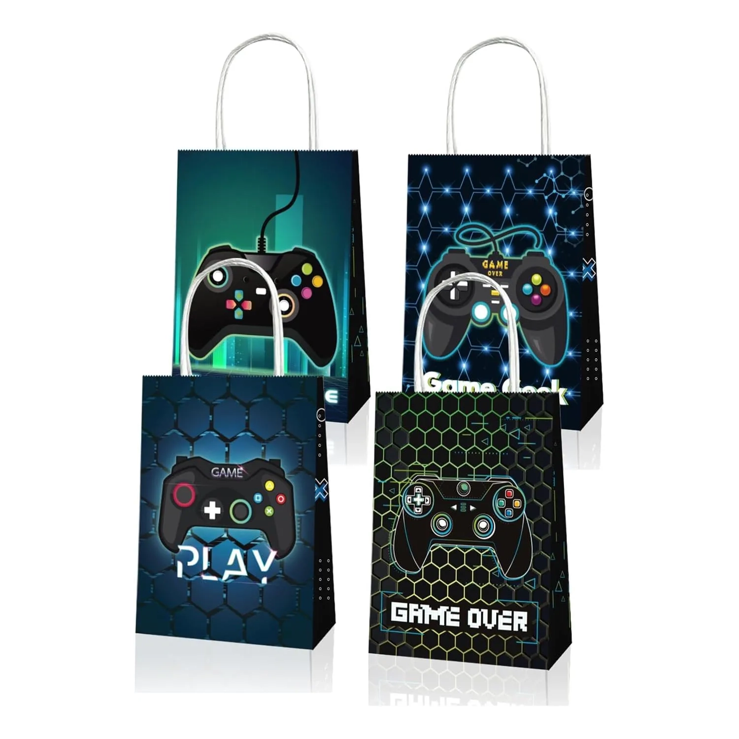 Cool Game Controller Themed Paper Bags: This 12-piece game controller paper bag features an eye-catching game controller theme design, printed with classic controller buttons, directional keys, or cool gaming element patterns.