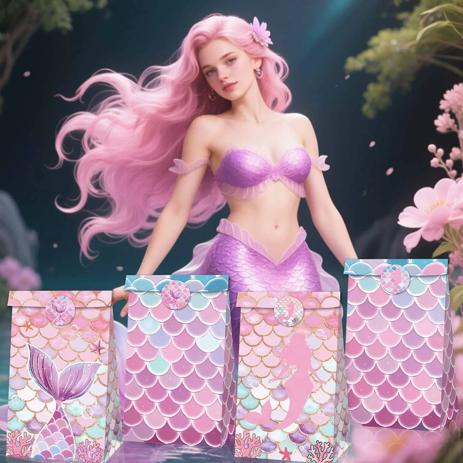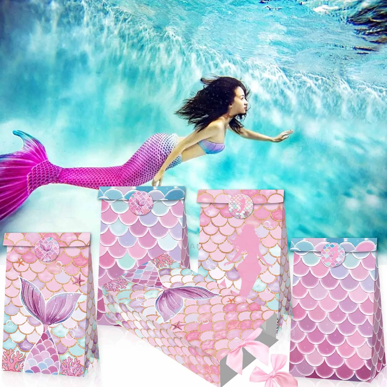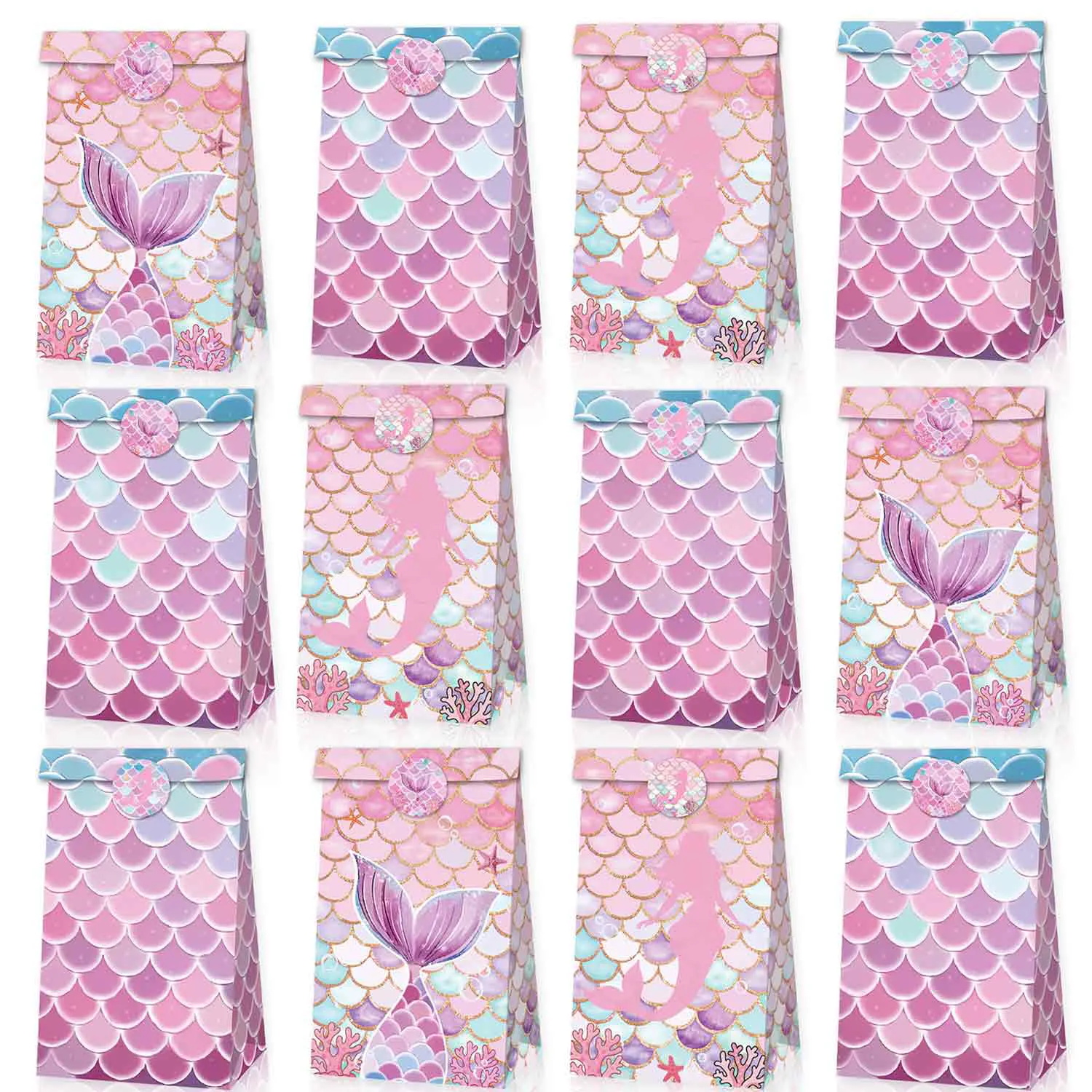 Mermaid Gift Bags: The package includes 12 party gift bags designed with mermaid tail scales, featuring 4 different styles, and comes with 18 stickers, These gift bags are very suitable for women's various activity occasions.