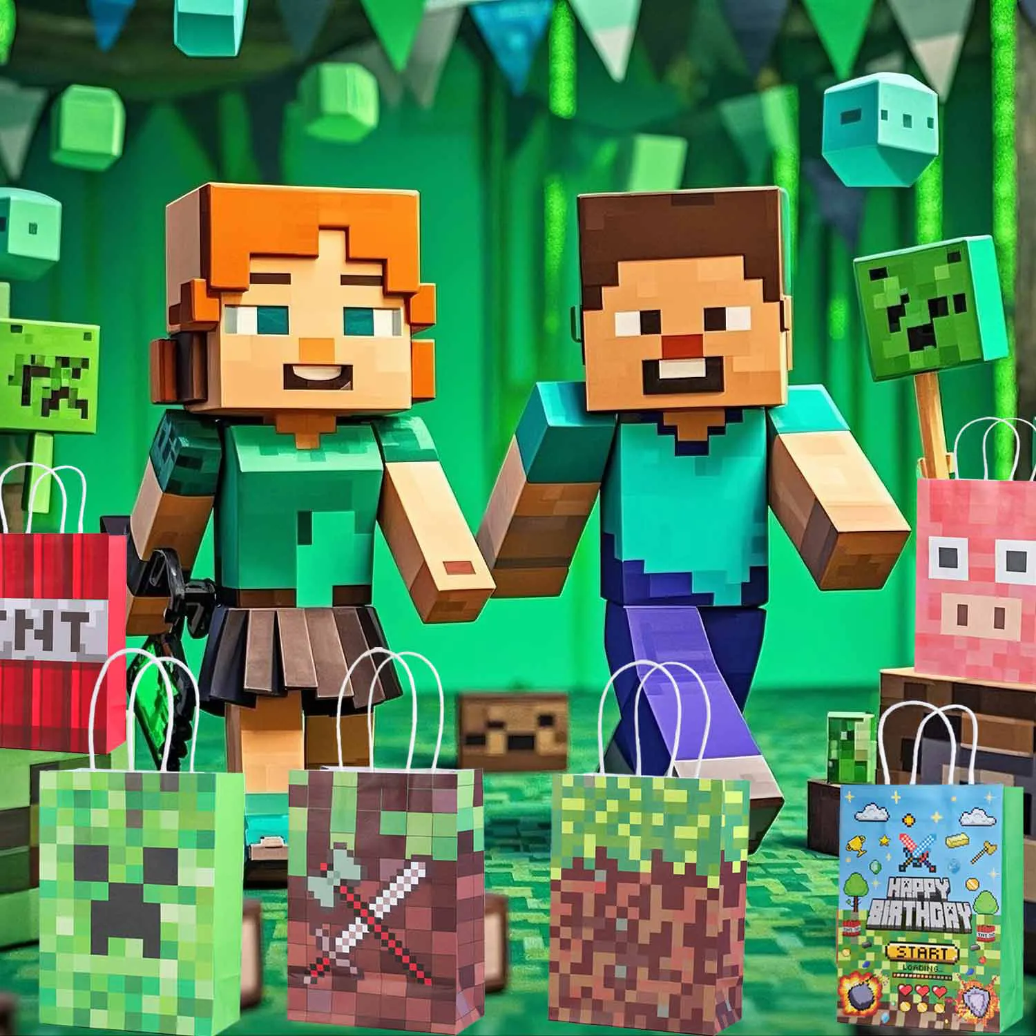 The Ideal Choice for Gift Bags:Whether for birthday parties, treasure hunt-themed parties, retro gaming parties, or holiday celebrations, this creative paper bag with miner elements is the perfect choice for packaging gifts.