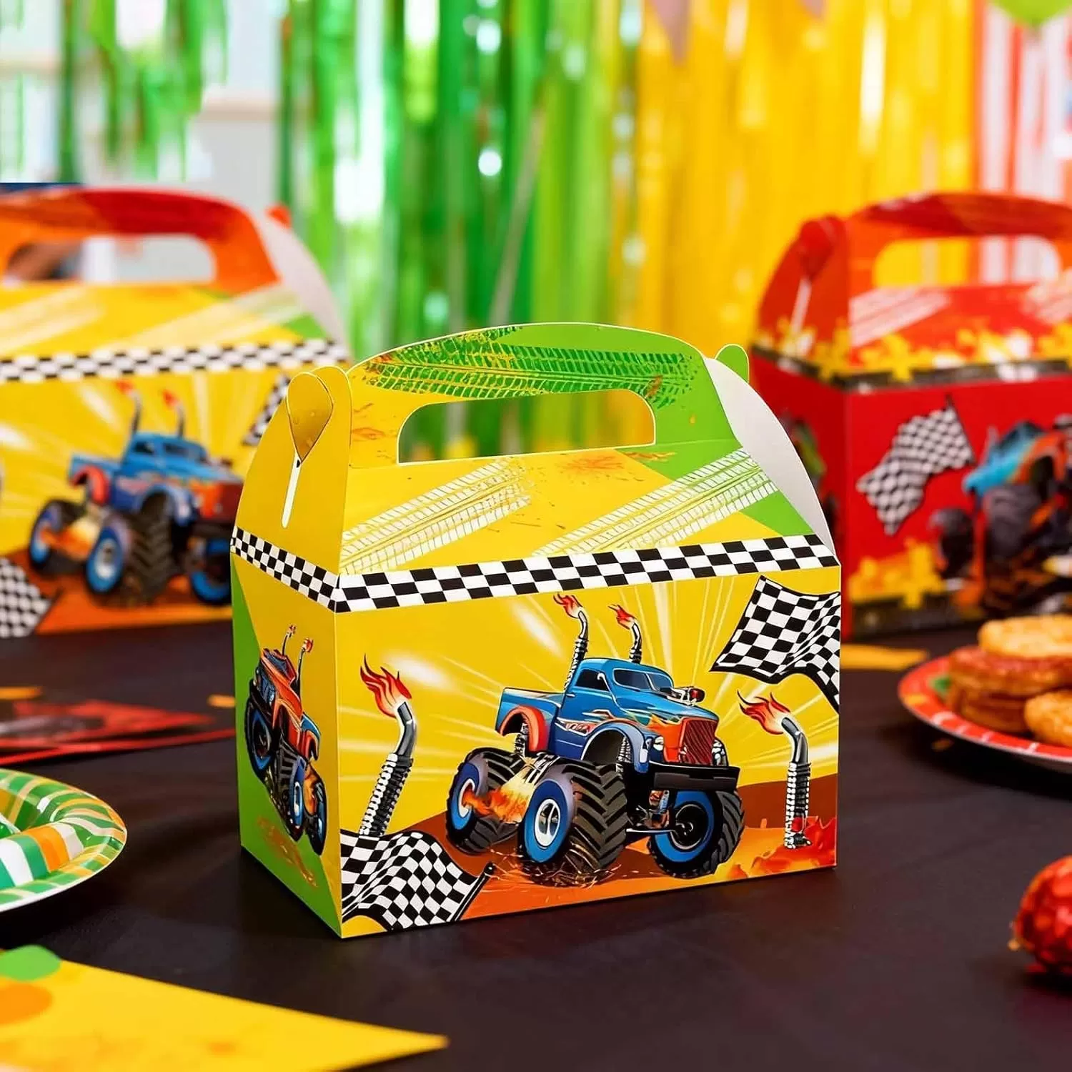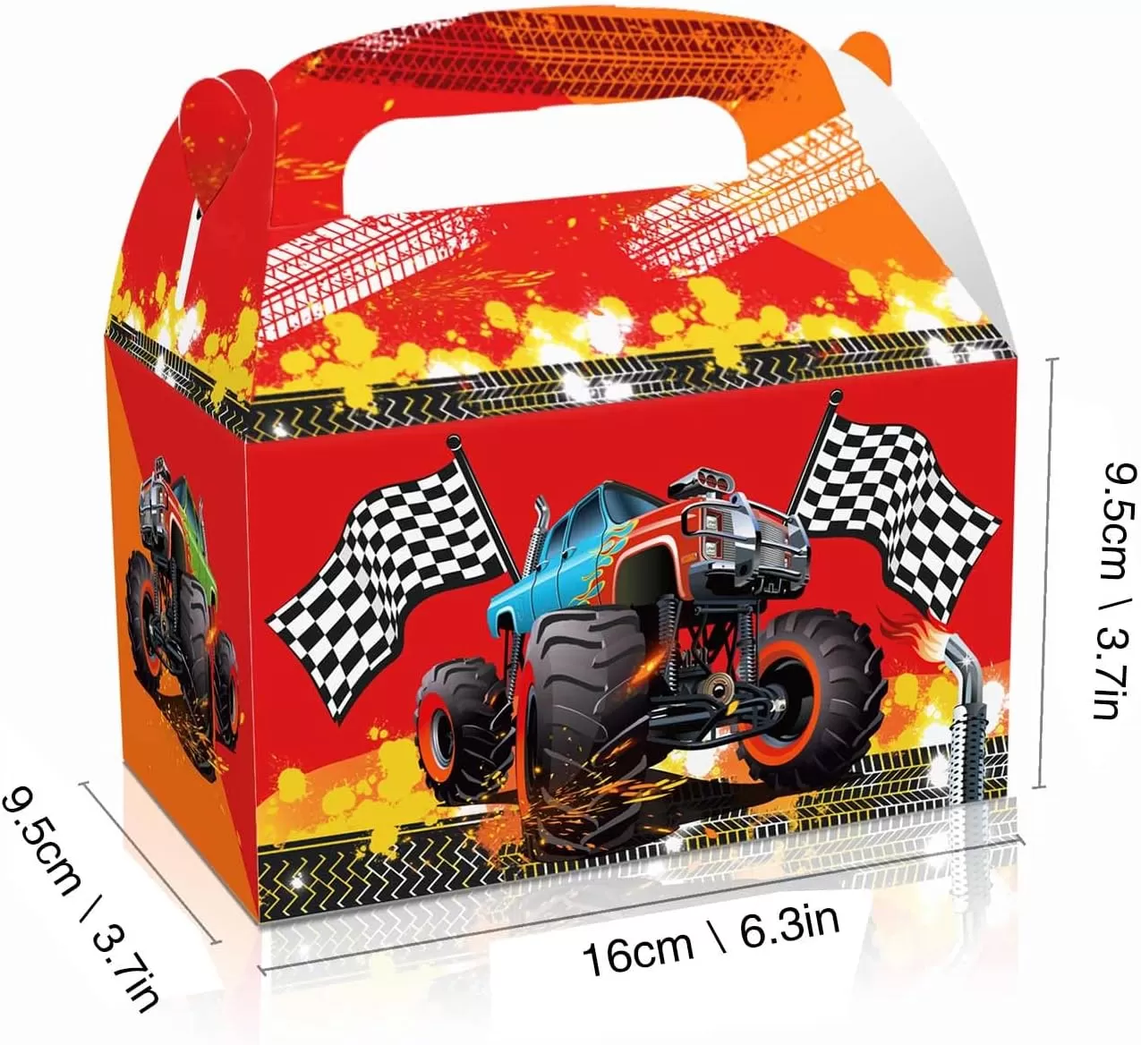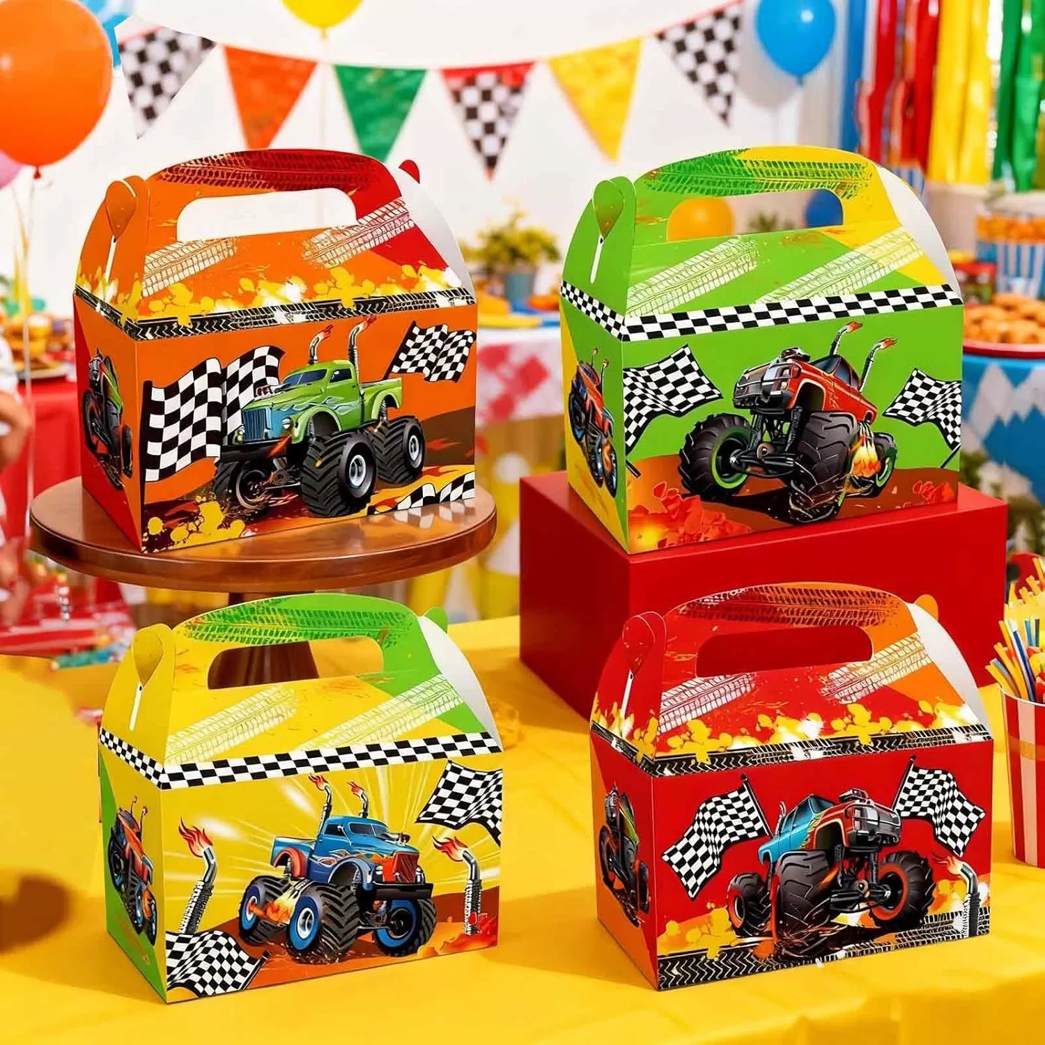 Monster Truck -Themed Paper Box: These gift paper bags feature colorful truck designs that enhance the event atmosphere and capture everyone's attention.