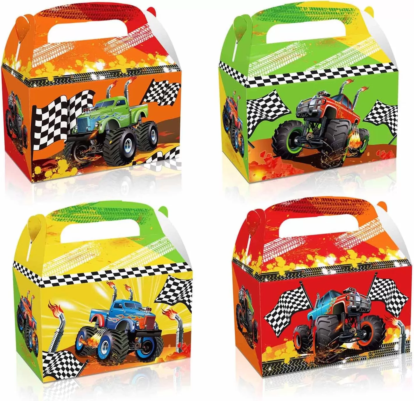 JIELEN 12 PCS Monster Truck Themed Paper Boxes - Goodie Boxes,Gift Paper Boxes,Paper Box,Handheld Paper Gift Boxes