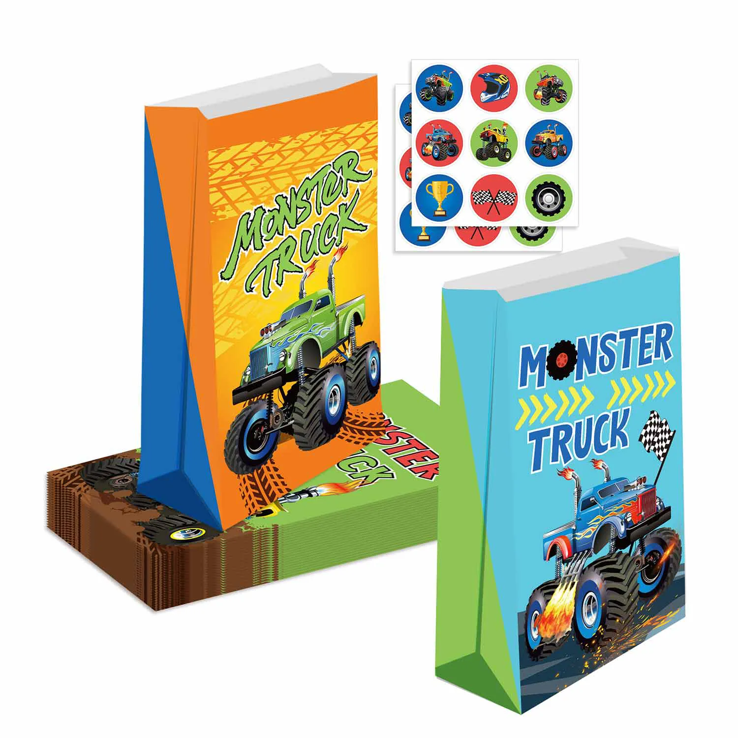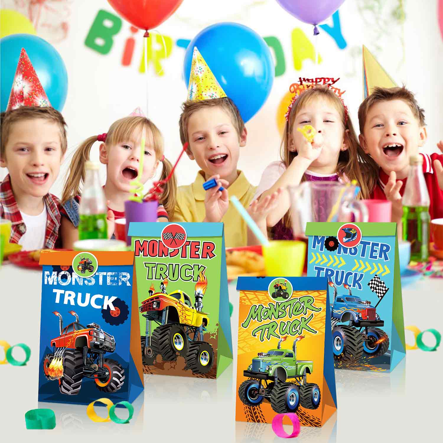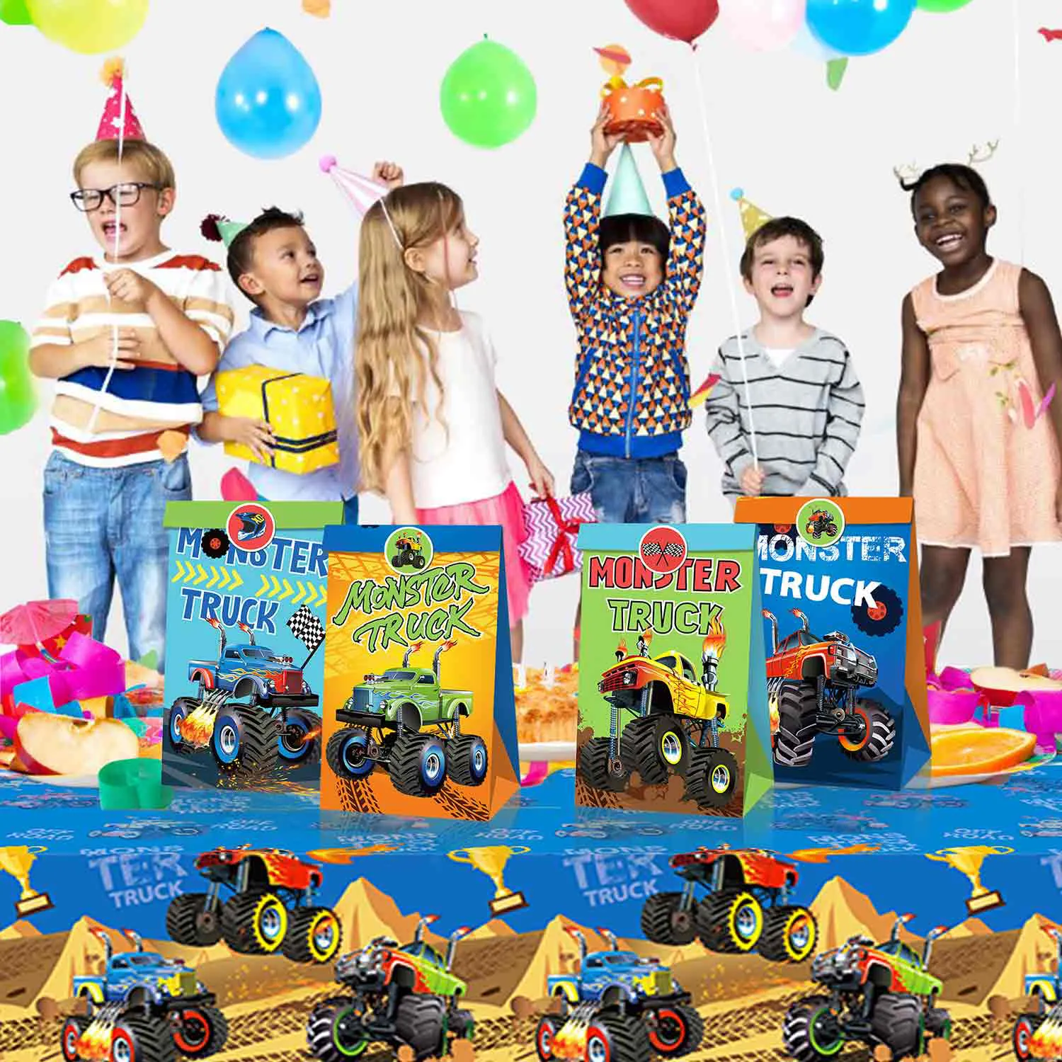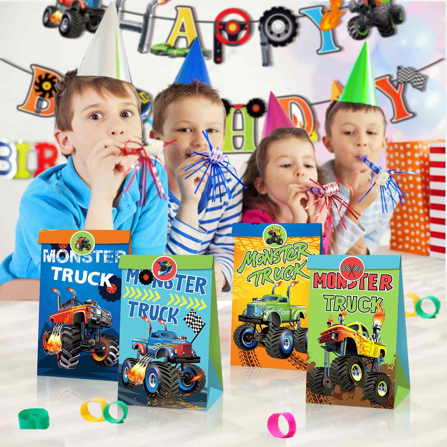 JIELEN 12 PCS Racing Car Themed Paper Bags - Race Car Goodie Bags,Gift Bags,Monster Truck Theme Paper Bags,Shopping Bags,Kraft Paper Bags