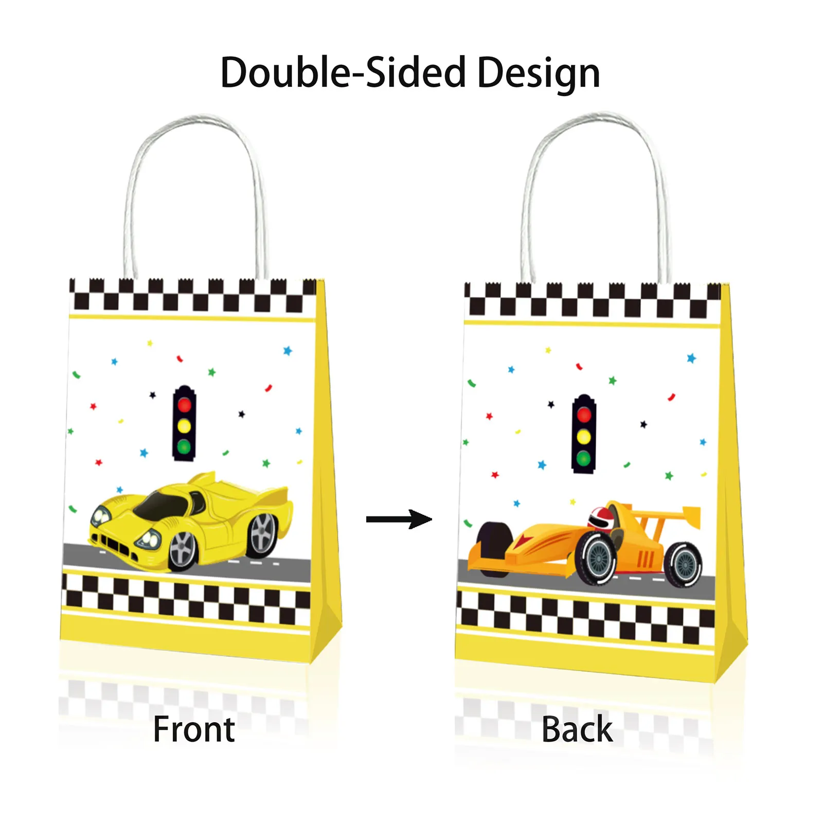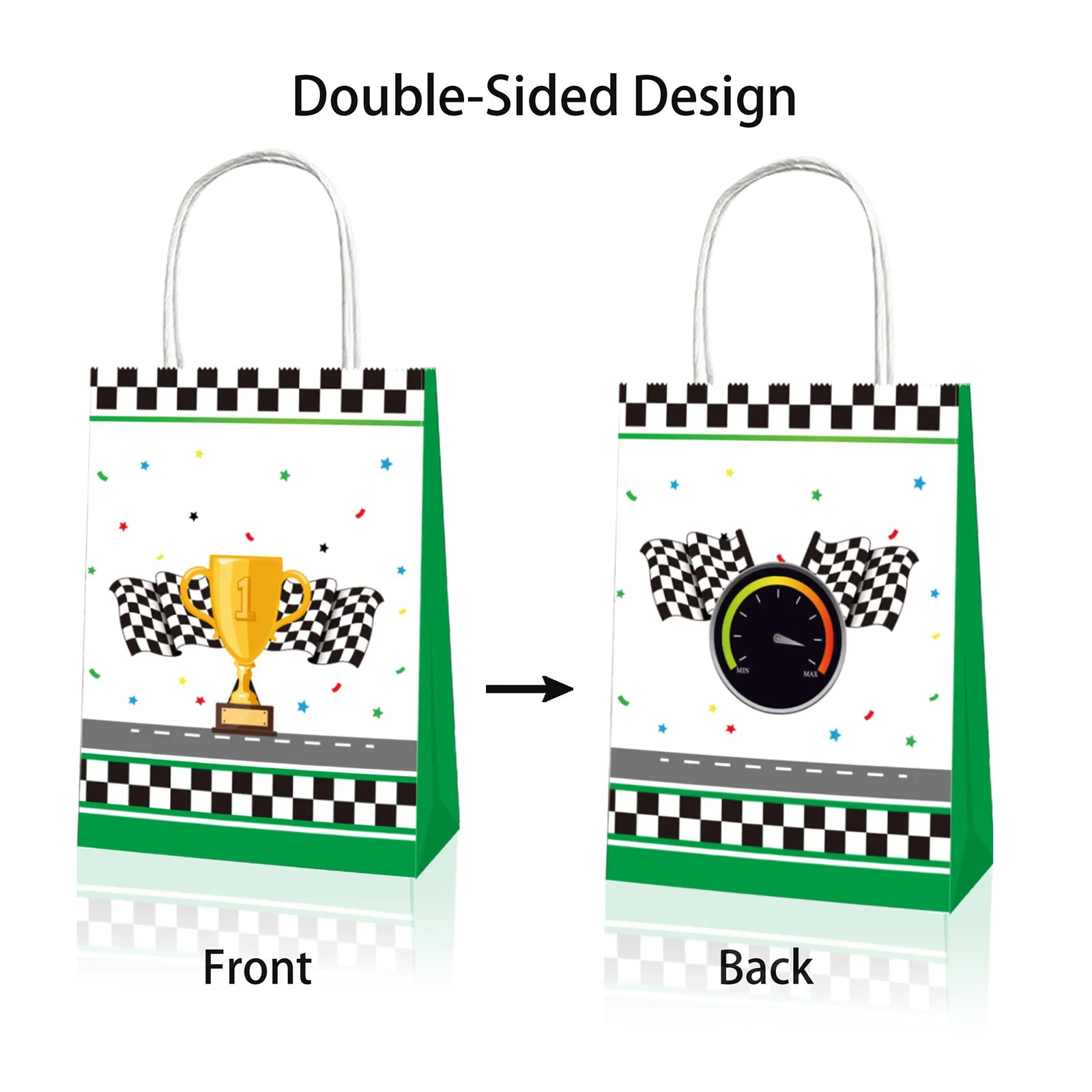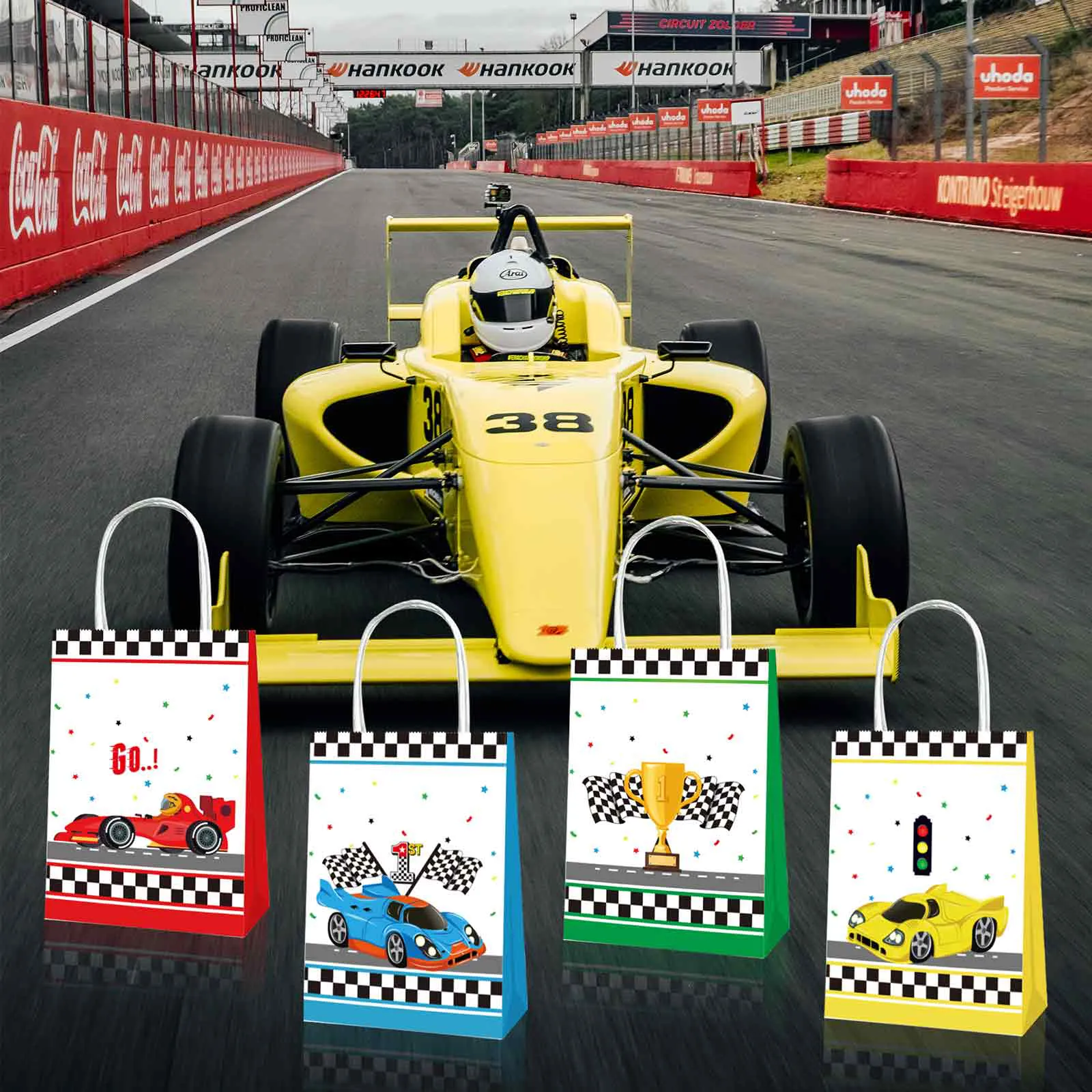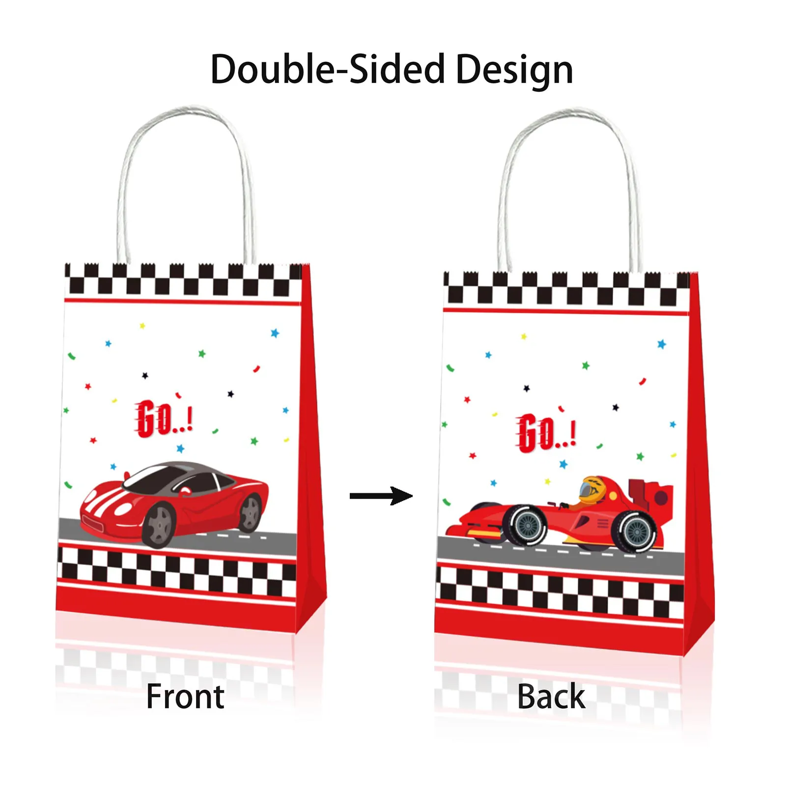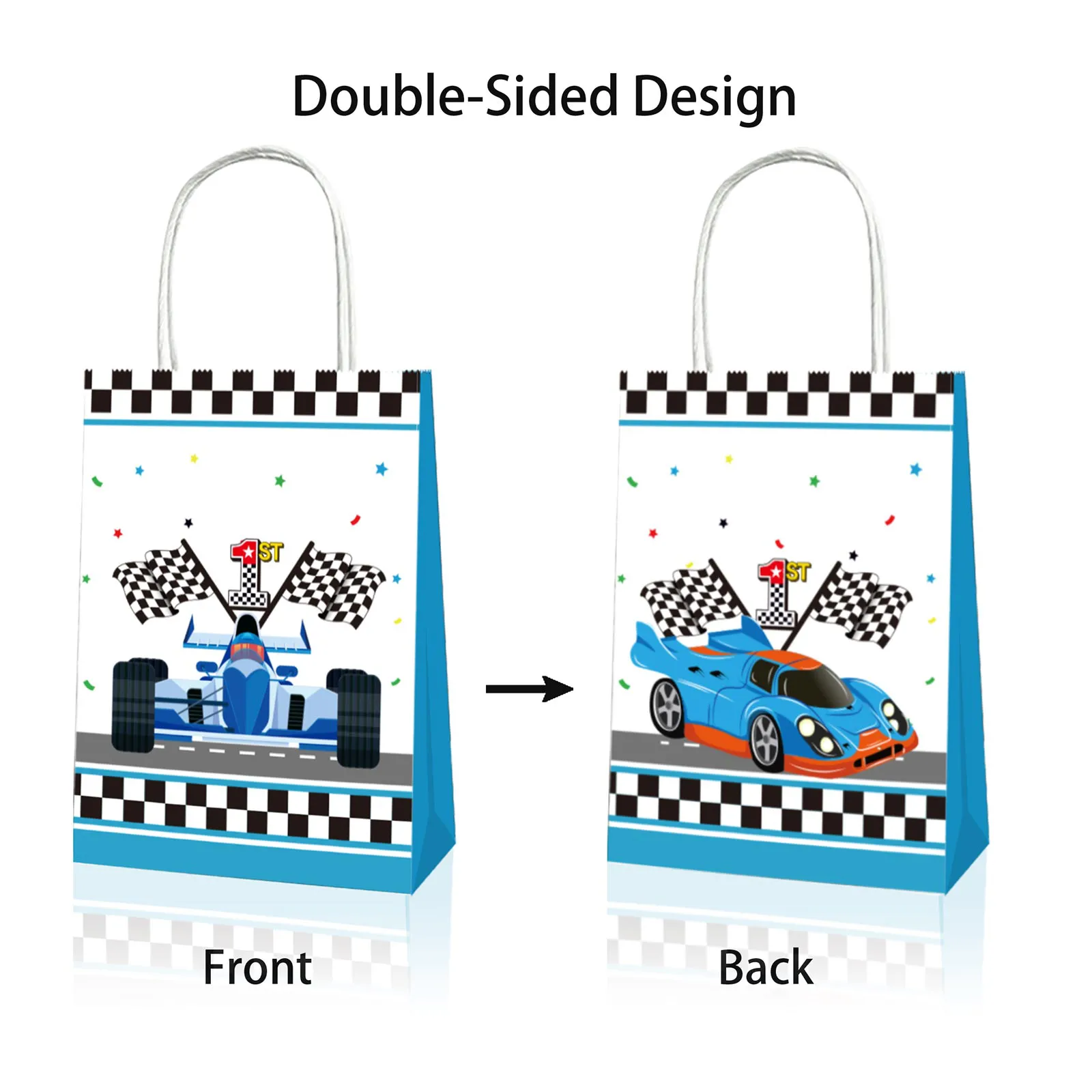 Packaging Details: Includes 12 pcs racing cars themed paper bags, for endless head-to-head competition and grand prix-style tournaments; perfect for hosting thrilling races with friends.