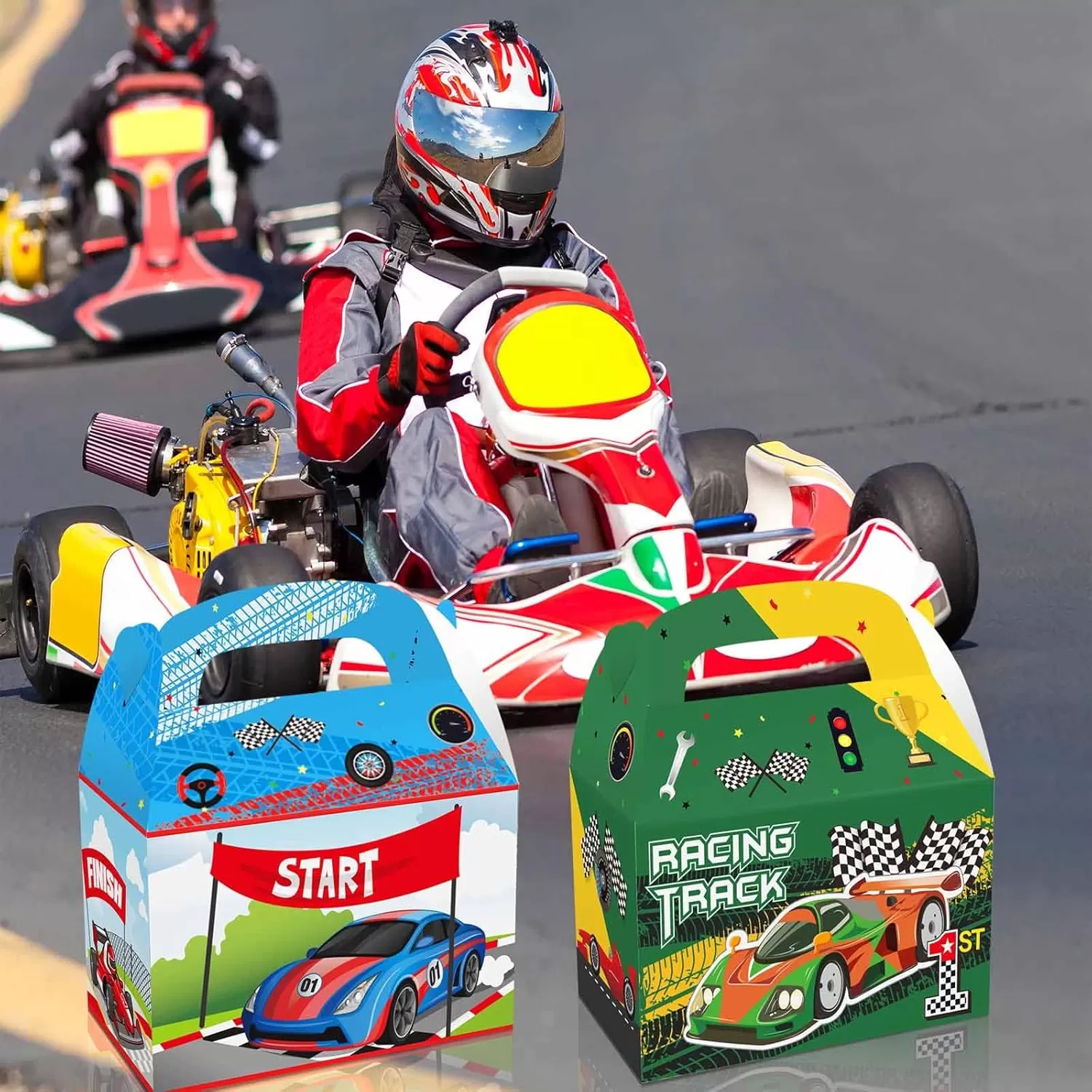 Racing party decor: The car party goodie gift boxes will be the perfect addition to your party. Use them to hold favors and candies to impress your guests.