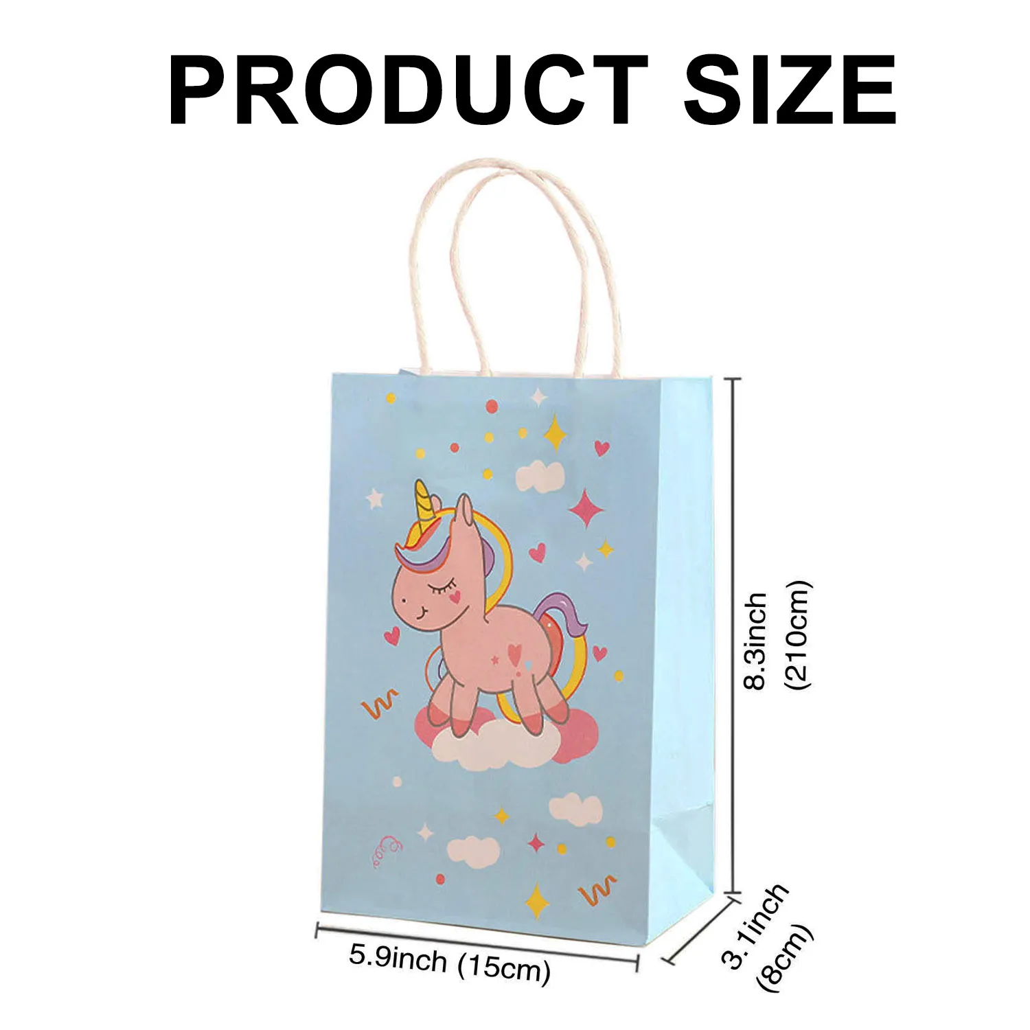 Gift bag Size:20 Pack goodie bags for Rainbow Horse gift bags with Handles are 5.9*3.2*8.3 inch in size. Perfect decorations for Rainbow Horse gift bags to hold more of various small items carried.
